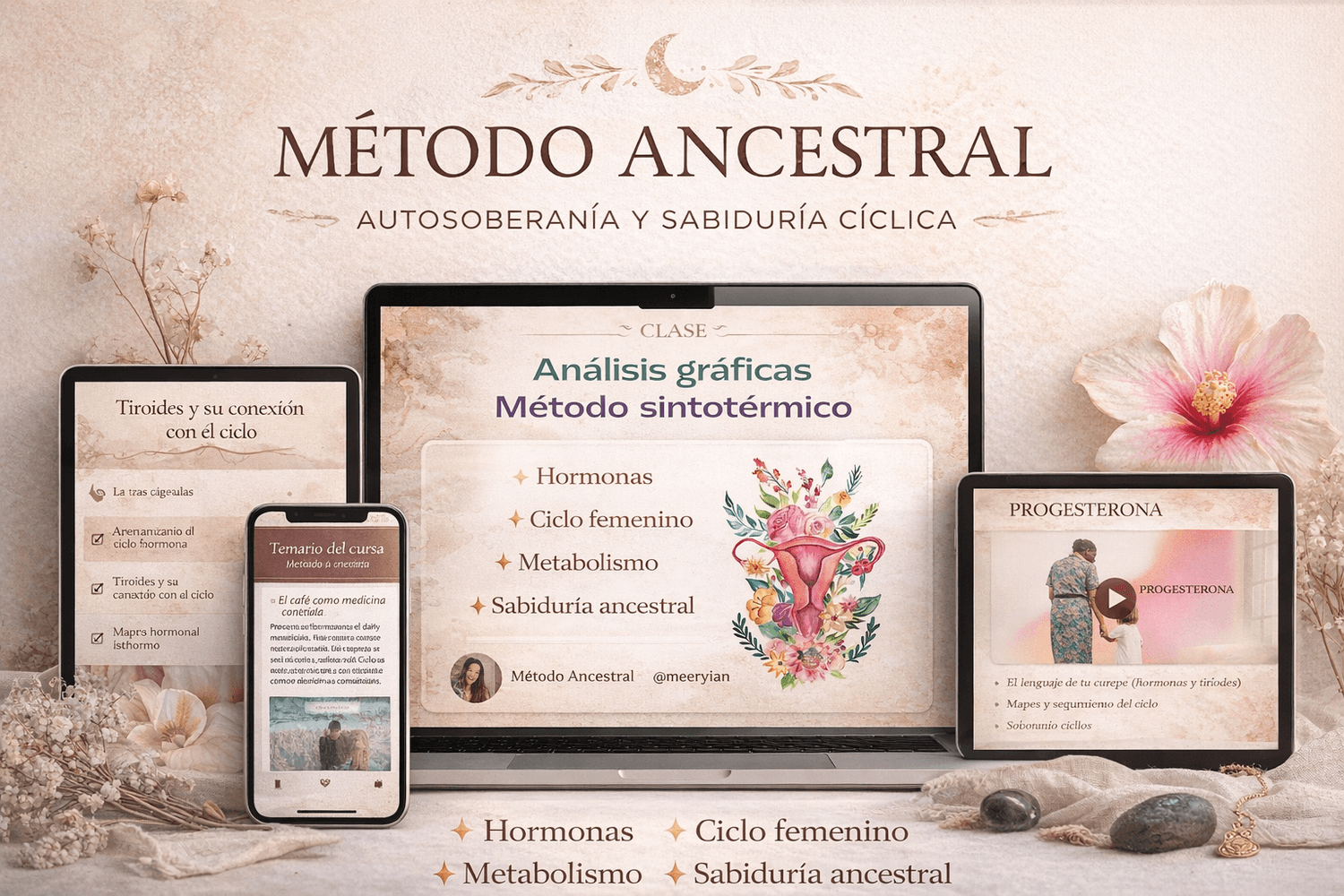 Un camino de exploración hacia tu fertilidad, tus ritmos y tu origen. Un curso pregrabado profundamente completo, práctico y transformador que reúne saberes actuales y sabiduría ancestral para mujeres que desean comprender su ciclo, explorar la relación entre tiroides y fertilidad, y vivir el Método Ancestral como una práctica cotidiana de autoconocimiento y cuidado. No te prometo que “te vas a sanar”. Te ofrezco algo más real y más profundo: un espacio para comprender tu cuerpo, explorar tus ritmos y reconectar con la sabiduría que ya vive en ti.